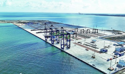 由中国港湾工程有限责任公司承建的埃及亚历山大港阿布基尔集装箱码头。新华社发
